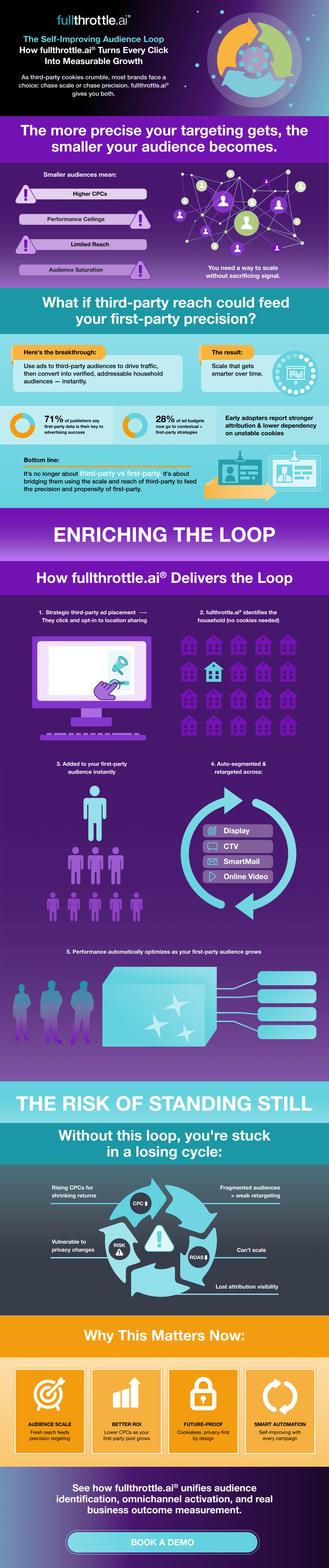 Check out the infographic to see how fullthrottle.ai® transforms 3P reach into owned, activated audiences, and turns anonymous visitors into high-ROI segments in days, not months.