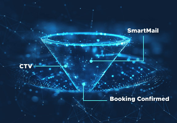 Using your identified audience, our AI Media Agent helps you instantly reach them across video, SmartMail, display, audio, and more. So, when a traveler is ready to book, your business or brand stands out as the one they remember.